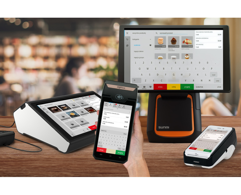 mobilny: iPOS pocket2 (kasa wirtualna) oraz stacjonarne: iPOS ultra (kasa wirtualna) i iPOS vero